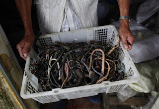 老楊養的其中一種蛇叫蝮蛇,這是一種毒性很強的蛇。人被這種蛇咬到,如果在72小時之內不治療的話就有生命危險。和其他養殖戶不一樣,他養 蛇既不賣蛇肉,也不賣蛇膽,更不賣蛇皮,那麼,他冒這麼大的危險養這種蛇賣的是什麼呢?